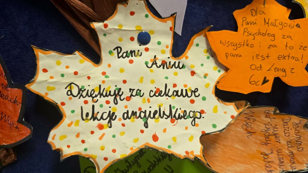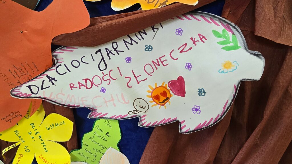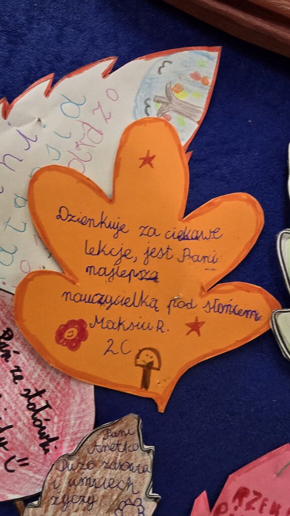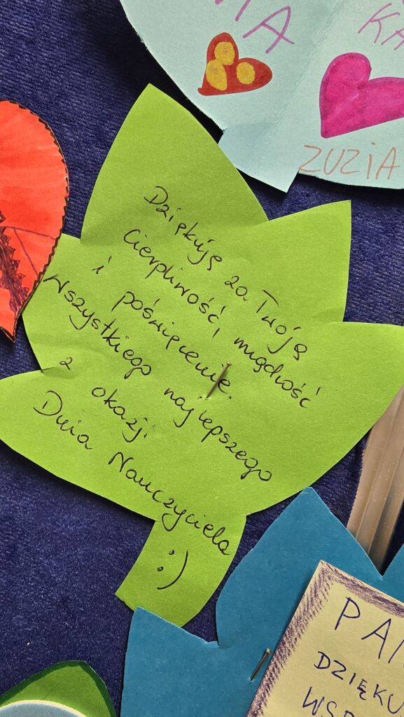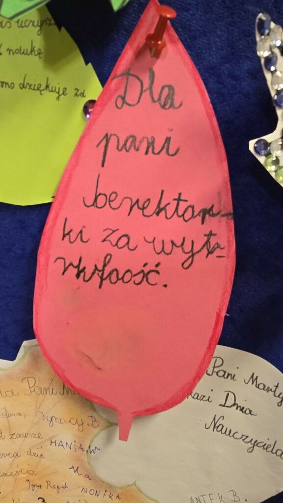Szczególne podziękowania kierujemy do Rady Rodziców, która zadbała o pyszny poczęstunek dla całego grona pedagogicznego oraz przygotowała tablicę-niespodziankę z życzeniami od wszystkich uczniów dla każdego nauczyciela. Ten gest sprawił wiele radości i wzruszeń!