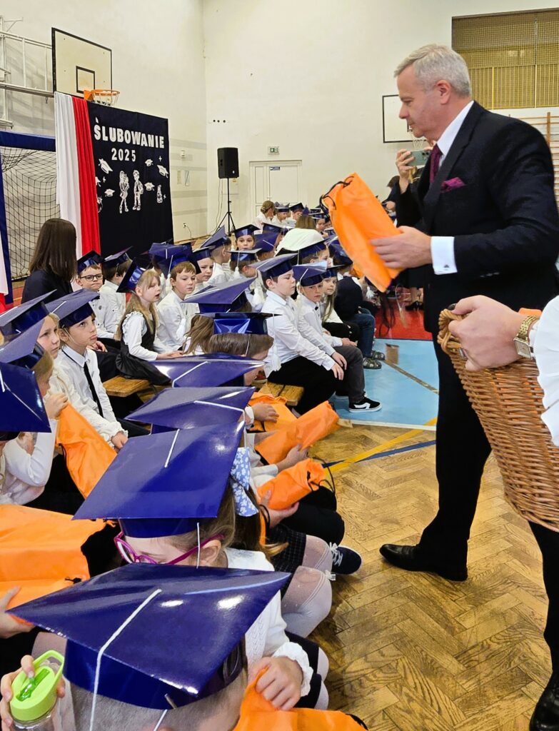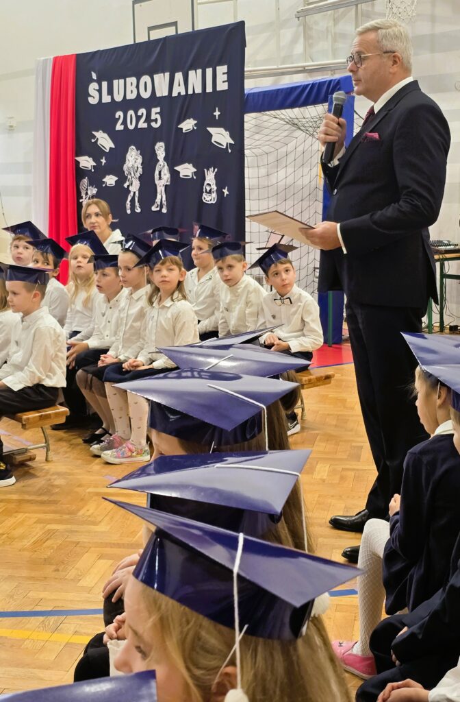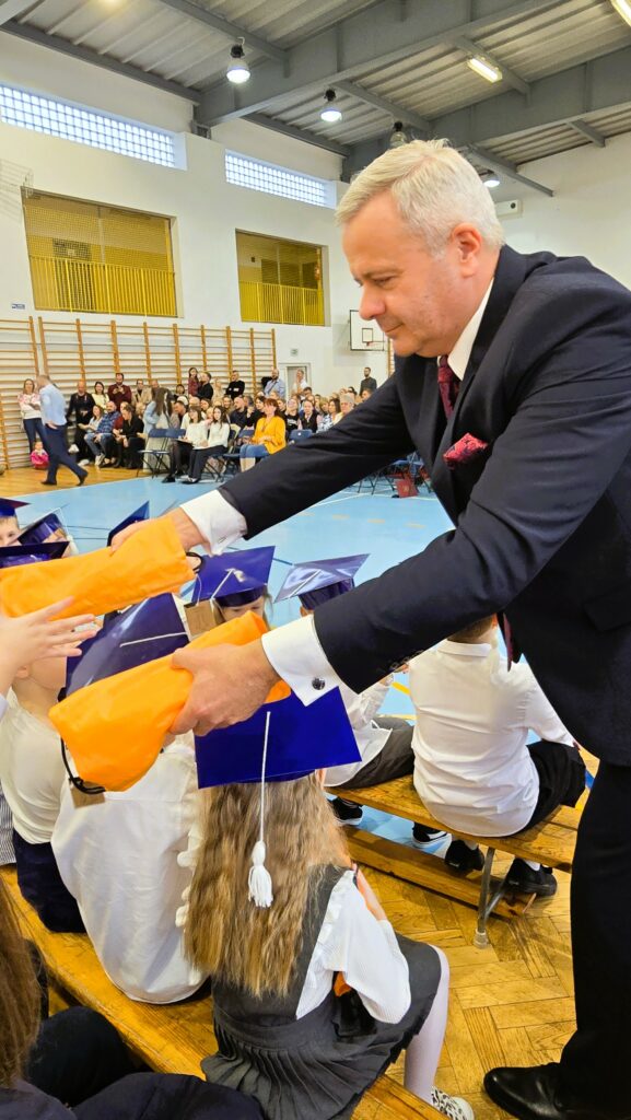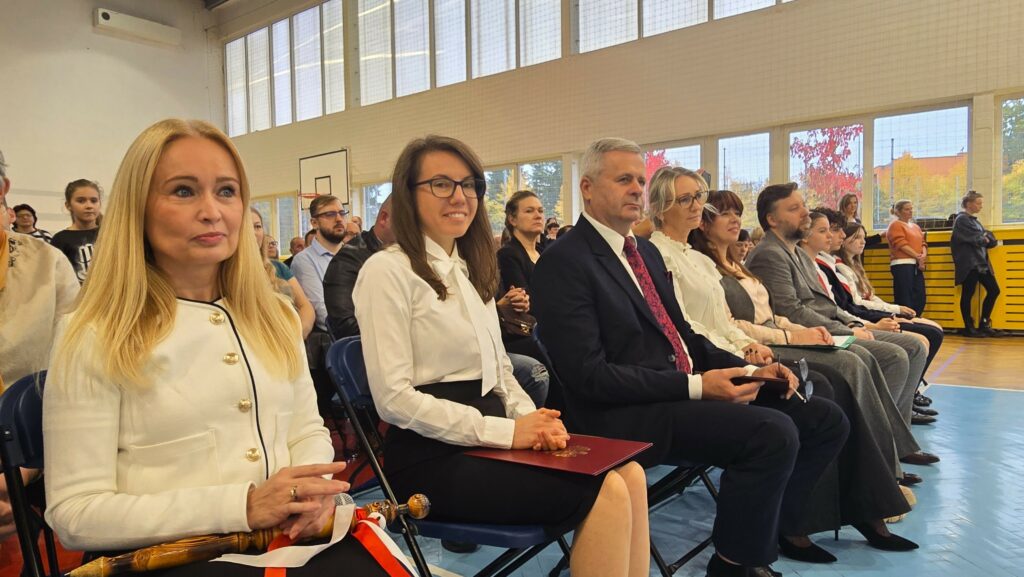 W wydarzeniu uczestniczyli również Pan Burmistrz Tomasz Dąbrowski oraz Przewodnicząca Rady Rodziców, Pani Justyna Klimek, którzy swoją obecnością podkreślili wagę tej chwili.