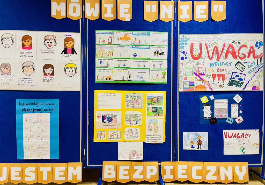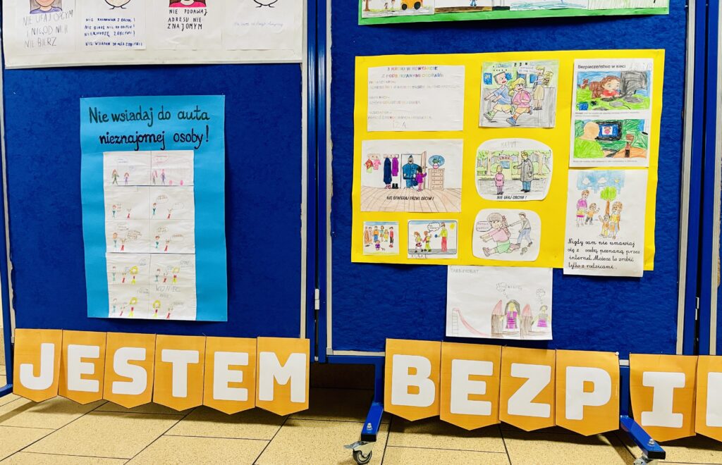 W świetlicy szkolnej przeprowadzone zostały zajęcia dotyczące bezpieczeństwa w Internecie oraz sposobów reagowania w sytuacji kontaktu z osobą nieznajomą. Dzieci wspólnie z nauczycielami omawiali konkretne sytuacje oraz przykłady reakcji. W ramach podsumowania zajęć dzieci wykonały plakaty, z których przygotowana została wystawa na szkolnym korytarzu.