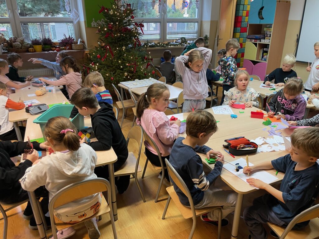 Podczas grudniowych zajęć w świetlicy szkolnej rozmawialiśmy o zimie i jej oznakach w przyrodzie, jak pomagać zimą zwierzętom. W ramach cyklu zajęć o stylach artystycznych dowiedzieliśmy się czym jest impresjonizm. Przypomnieliśmy sobie tradycje świąteczne i noworoczne. Odbył się nasz Świetlicowy Koncert Mikołajkowy dla bliskich naszych podopiecznych. Przygotowaliśmy wiele ciekawych prac plastycznych.