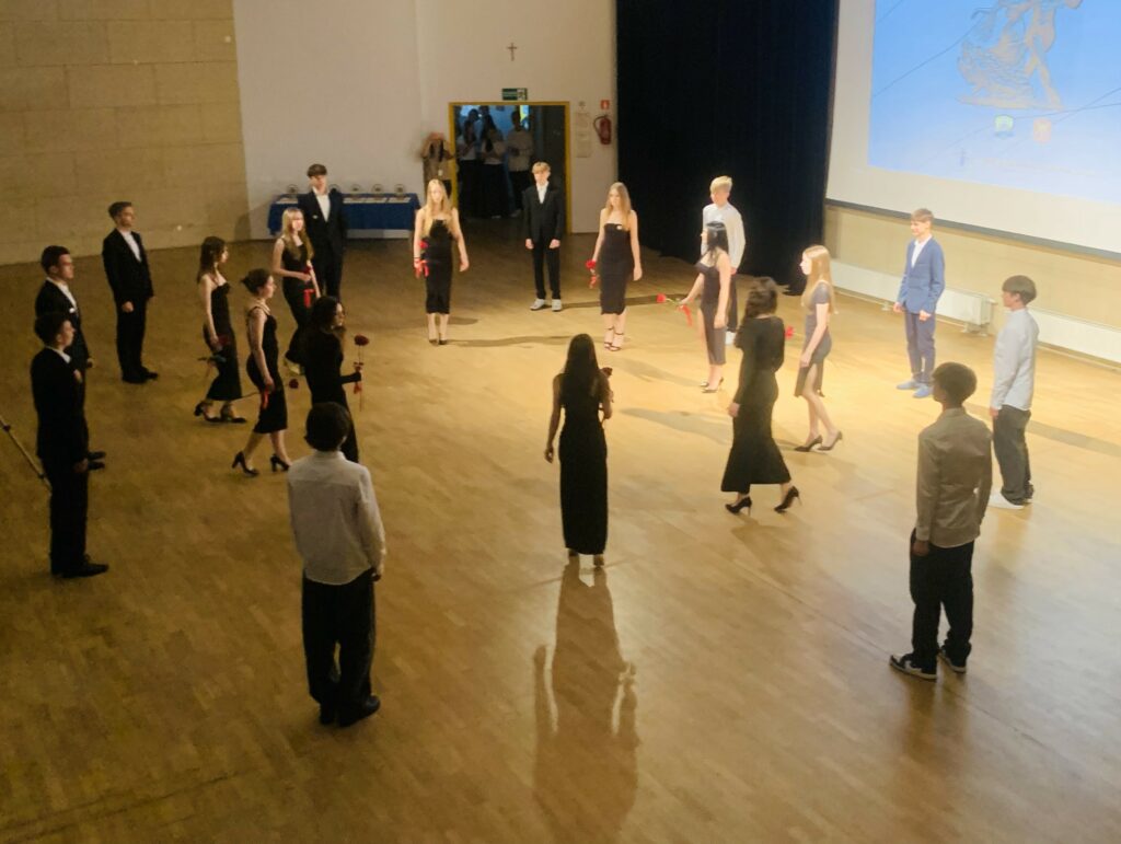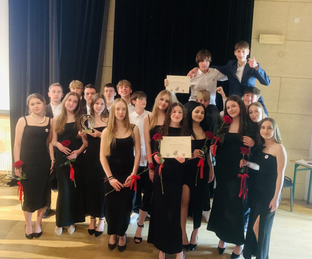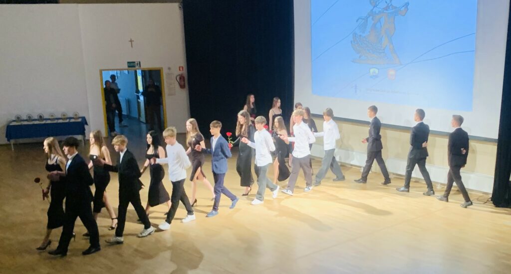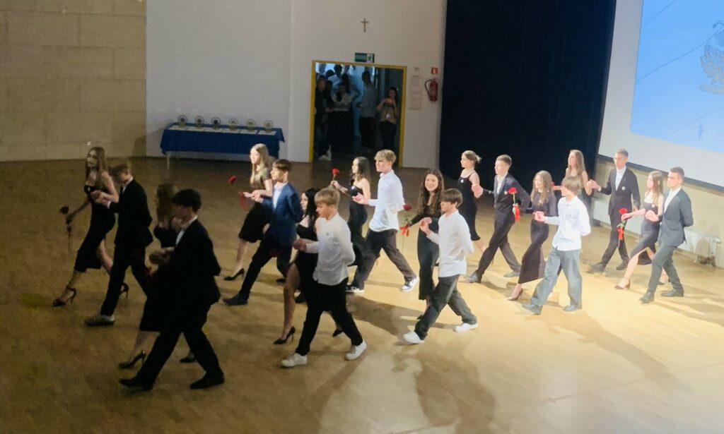 Nasi uczniowie zaprezentowali starannie przygotowany układ poloneza, który spotkał się z entuzjastycznym przyjęciem publiczności. Taniec, pełen elegancji i wdzięku, był wynikiem prób oraz zaangażowania młodzieży, co zaowocowało pięknym i poruszającym występem.