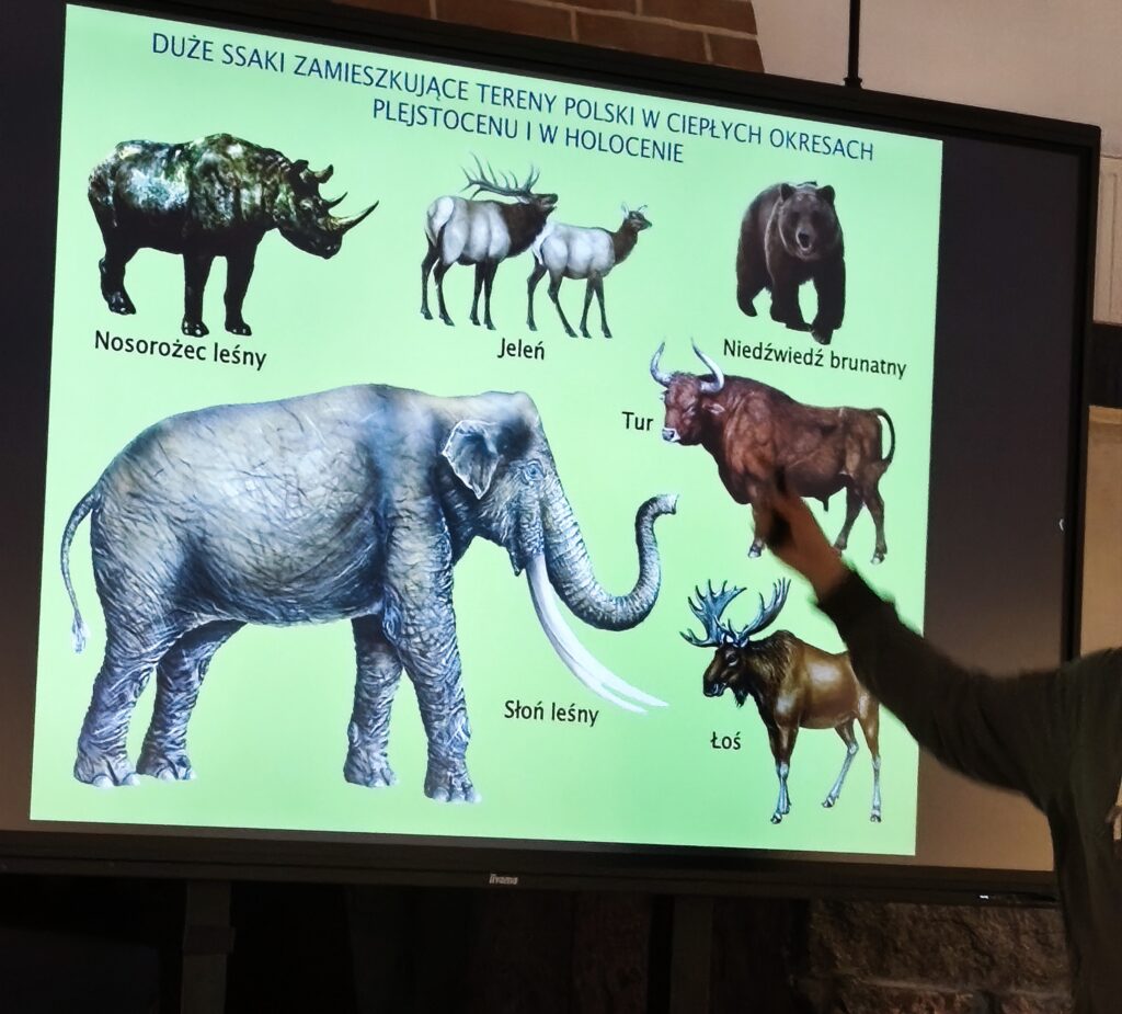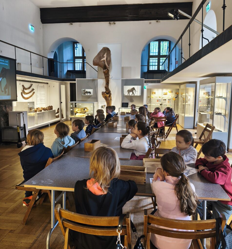 7.10.2025 roku uczniowie klasy 2 odwiedzili Muzeum Ziemi w Warszawie i wzięli udział warsztatach „Kiedy w Polsce żyły słonie”. W trakcie warsztatów uczniowie mieli możliwość zapoznania się ze zwierzętami, jakie żyły na terenach Polski podczas plejstocenu – okresu geologicznego obejmującego ostatnie 2 500 000 lat dziejów Ziemi. Okres ten charakteryzował się bardzo zmiennymi warunkami klimatycznymi, siedmiokrotnie na tereny Polski, Europy, Azji i Ameryki Północnej wkraczał lądolód z okolic bieguna północnego. W związku z tym zmieniały się warunki życia, w okresach międzylodowcowych żyły zwierzęta ciepłolubne, a w chłodniejszych zimnolubne. Sztandarowym przykładem zmian fauny byli przedstawiciele słoniowatych – słoń leśny Palaeoloxodon atiquus (największy słoń w dziejach tej grupy zwierząt, dochodzący do 4,5 m wysokości) oraz mamut włochaty Mammuthus primigenius. Uczniowie dowiedzieli się także, że kości dużych ssaków takich, jak słoń leśny, mamut, nosorożec włochaty i wiele innych, można znaleźć nawet w naszym najbliższym sąsiedztwie. Zamieniając się w małych archeologów własnoręcznie odkopali i złożyli „szkielet” mamuta włochatego oraz namalowali na marmurowych płytkach wizerunki zwierząt plejstoceńskich tak, jak to czynili niegdyś pradawni łowcy na ścianach jaskiń. Po warsztatach zwiedzili wystawę minerałów w Pałacyku Branickich, gdzie mieli okazję zobaczyć Meteoryt Drelów, który spadł 18 lutego 2025 roku w miejscowości Drelów w województwie lubelskim. Wizyta w Muzeum Ziemi była połączeniem historii i przyrody.