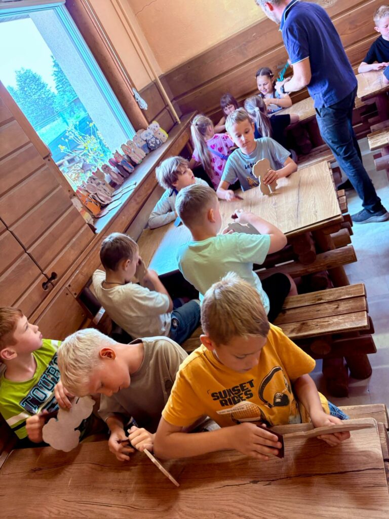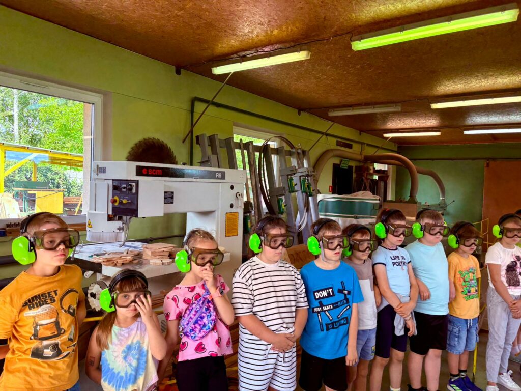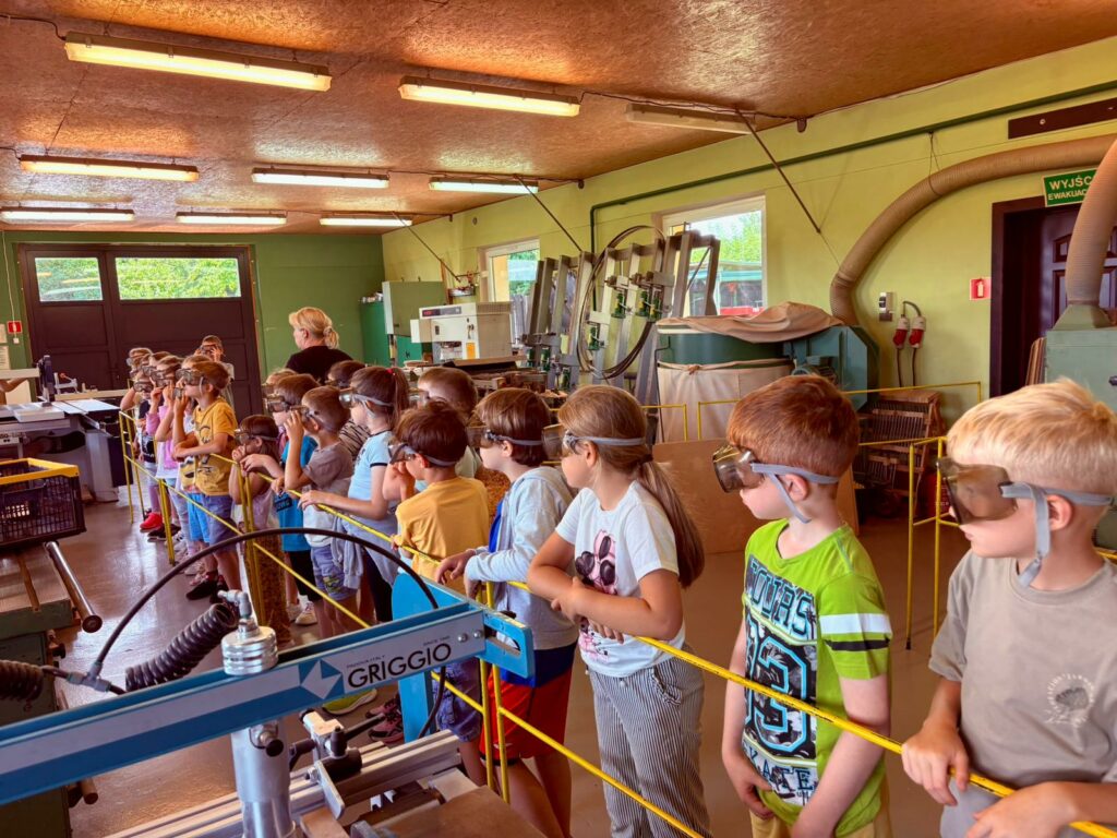 - wycieczka do Słomczyna, podczas której dzieci miały okazję poznać zawód stolarza oraz pod okiem specjalistów wykonały drewniane podstawki oraz figurki wycięte na profesjonalnych maszynach stolarskich,