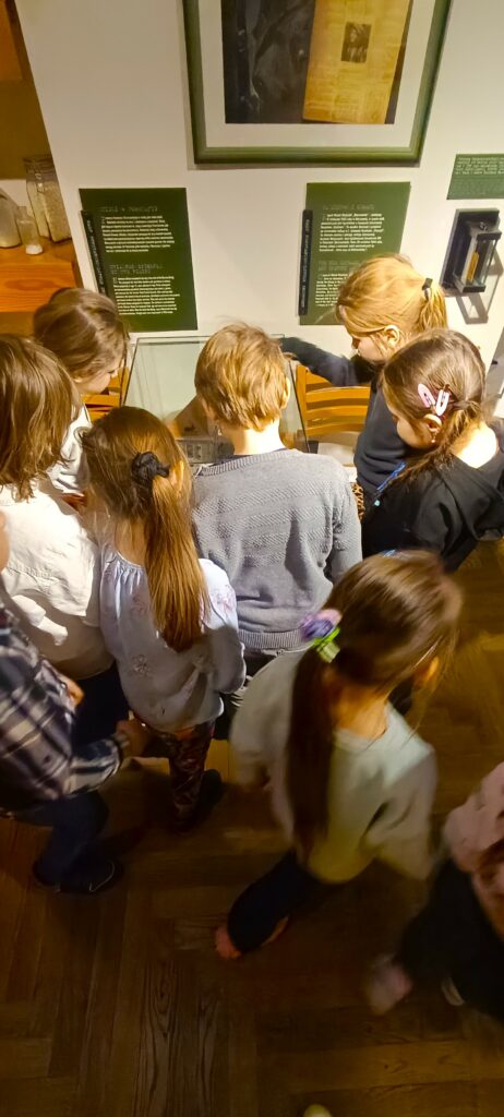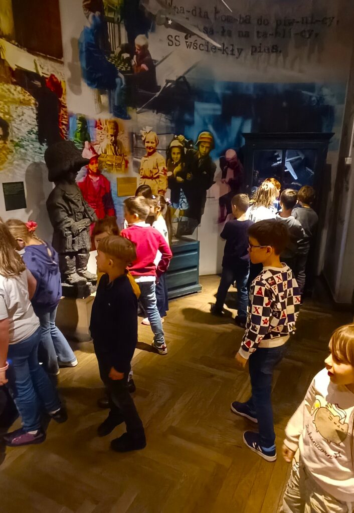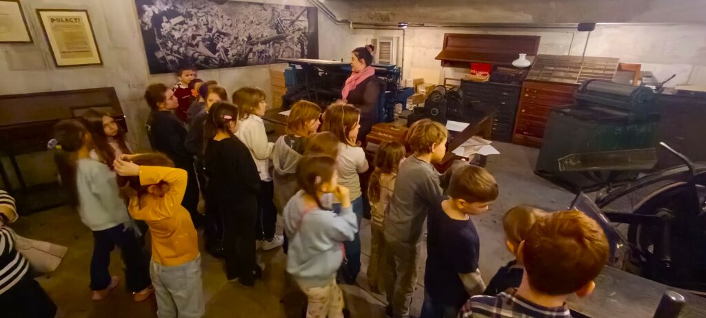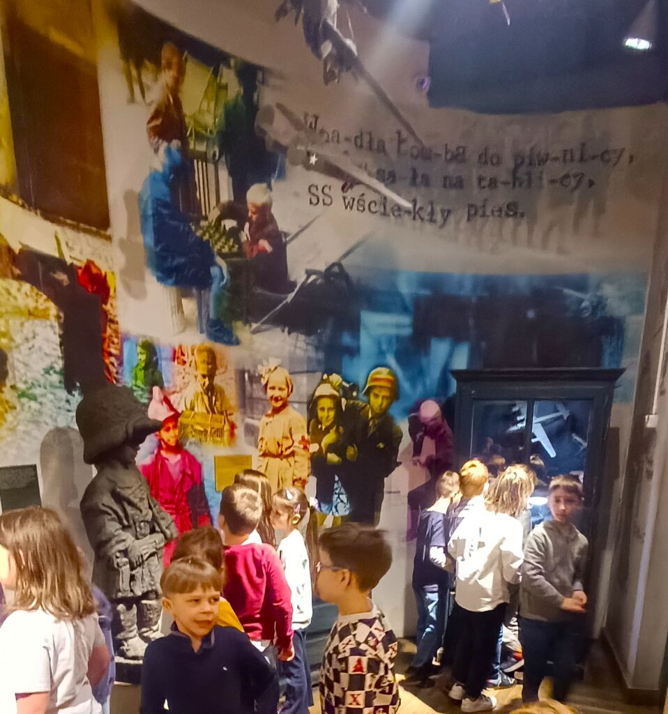 10 kwietnia 2025 r. uczniowie klasy 1 wzięli udział w lekcji historii w Muzeum Powstania Warszawskiego „Co to jest Muzeum Powstania Warszawskiego?”. Podczas zajęć dowiedzieli się: kiedy rozpoczęła się II wojna światowa, czym było Powstanie Warszawskie, dlaczego powstało muzeum i skąd wzięły się eksponaty w muzeum, słuchali bijącego 63 razy na minutę warszawskiego serca, zobaczyli starą drukarnię, replikę samolotu który podczas powstania zrzucał kapsuły z pomocą dla powstańców oraz najcenniejsze eksponaty – powstańcze opaski.