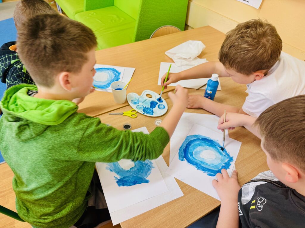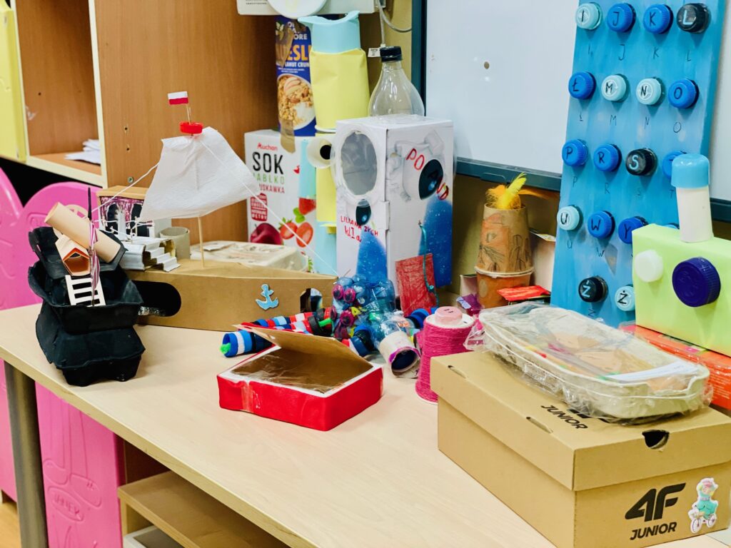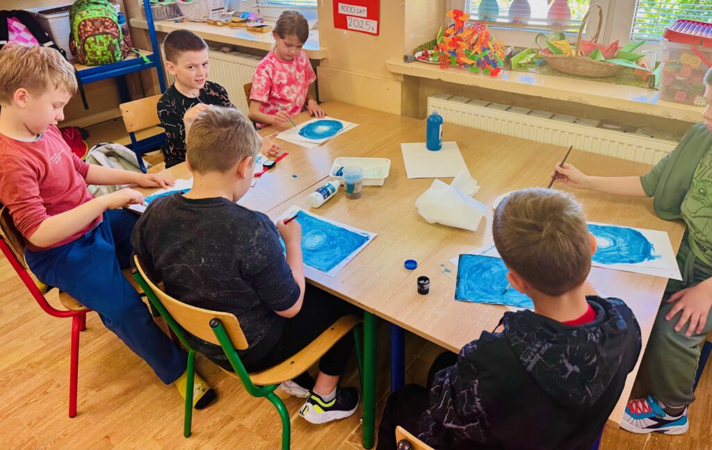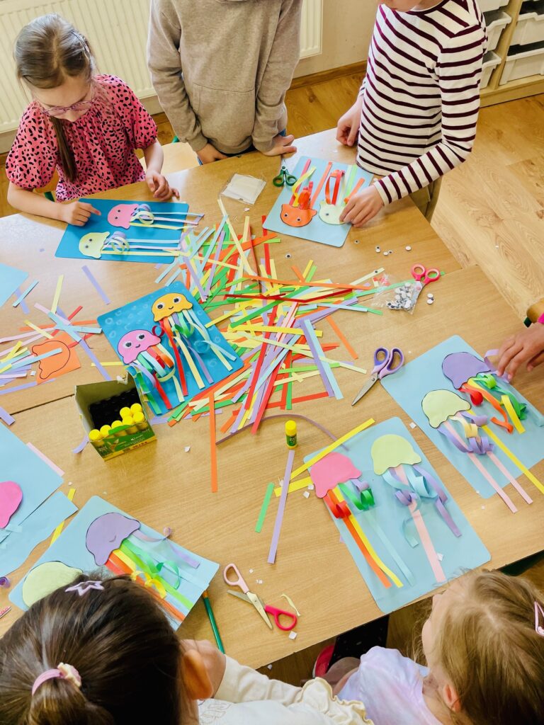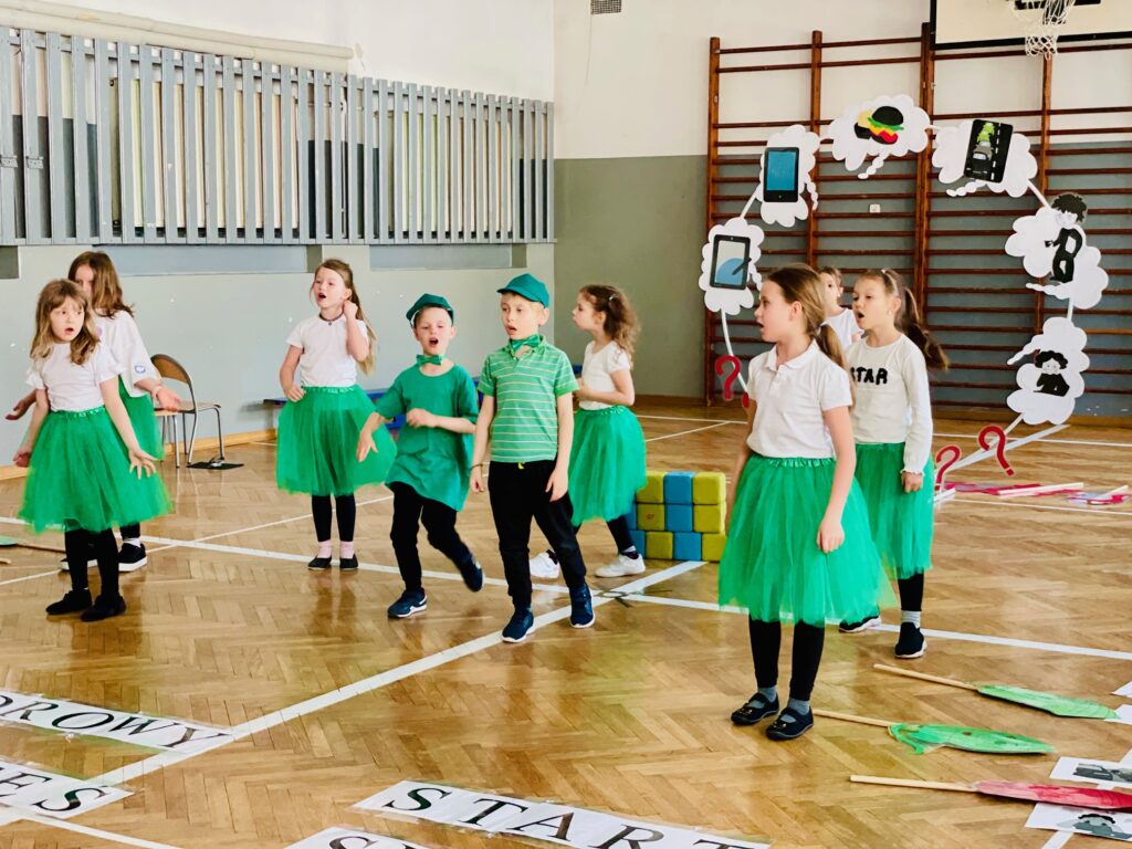 Podczas majowych zajęć w świetlicy szkolnej rozmawialiśmy o literaturze dziecięcej, ulubionych książkach naszych uczniów. Poznaliśmy historię i różne rodzaje tańca. Kontynuowaliśmy cykl zajęć o zwierzętach, tym razem zgłębiając wiedzę o rybach. Rozmawialiśmy o tym, dlaczego ruch, aktywność fizyczna jest ważna dla naszego zdrowia. Z tej okazji zorganizowaliśmy Świetlicową Olimpiadę Sportową. Miesiąc zakończyliśmy tematem o rodzinie. Rozstrzygnęliśmy konkurs pt. „Recyklingowa zabawka”. Spędzaliśmy dużo czasu na placu zabaw oraz boisku szkolnym. Wykonywaliśmy ciekawe prace plastyczne. Włączyliśmy się w przygotowanie atrakcji dla uczniów z okazji Dnia Dziecka. Nasza reprezentacja uczestników zajęć artystycznych zajęła I miejsce podczas powiatowego etapu Festiwalu Piosenki o Zdrowiu, organizowanym przez Powiatową Stację Sanitarno – Epidemiologiczną.