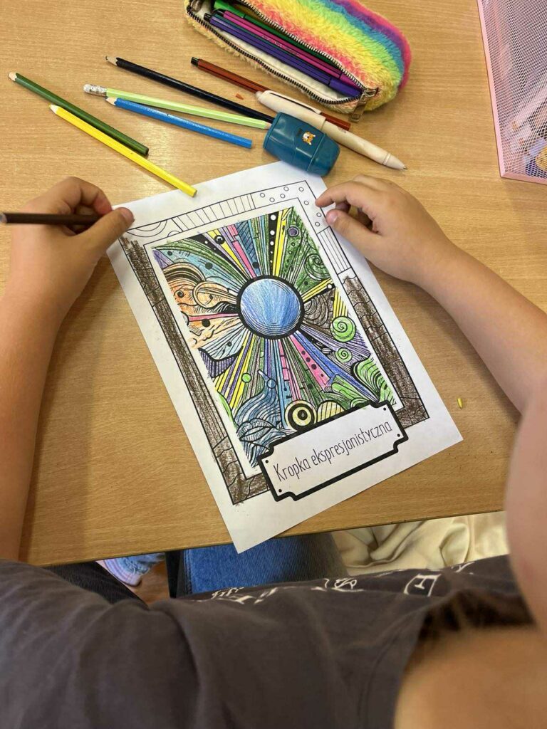 15 września w naszej szkole obchodziliśmy Międzynarodowy Dzień Kropki – święto kreatywności, odwagi i zabawy. Tego dnia uczniowie i nauczyciele przyszli do szkoły w ubraniach ozdobionych kropkami. Niektórzy udekorowali nimi twarze i ręce, inni przykleili je w formie zabawnych dodatków. W klasach odbywały się zajęcia plastyczne, podczas których dzieci rozwijały swoją wyobraźnię, prezentowały talenty oraz podejmowały „kropkowe wyzwania”. Na lekcjach nie zabrakło również aktywności związanych z kropką, twórczym myśleniem i radosną zabawą. Był to dzień pełen uśmiechu, kolorów i pomysłów, które jeszcze długo będą inspirować naszych uczniów.