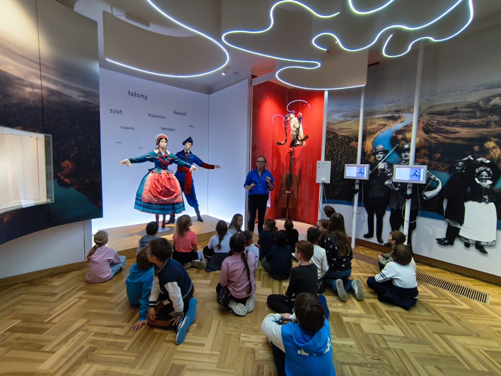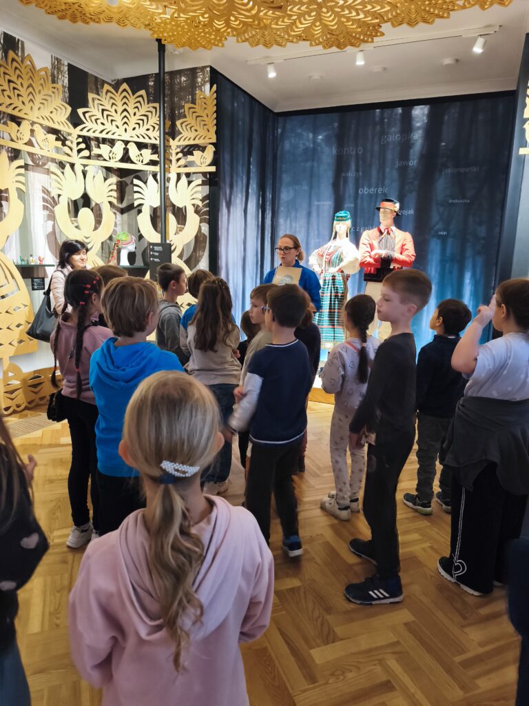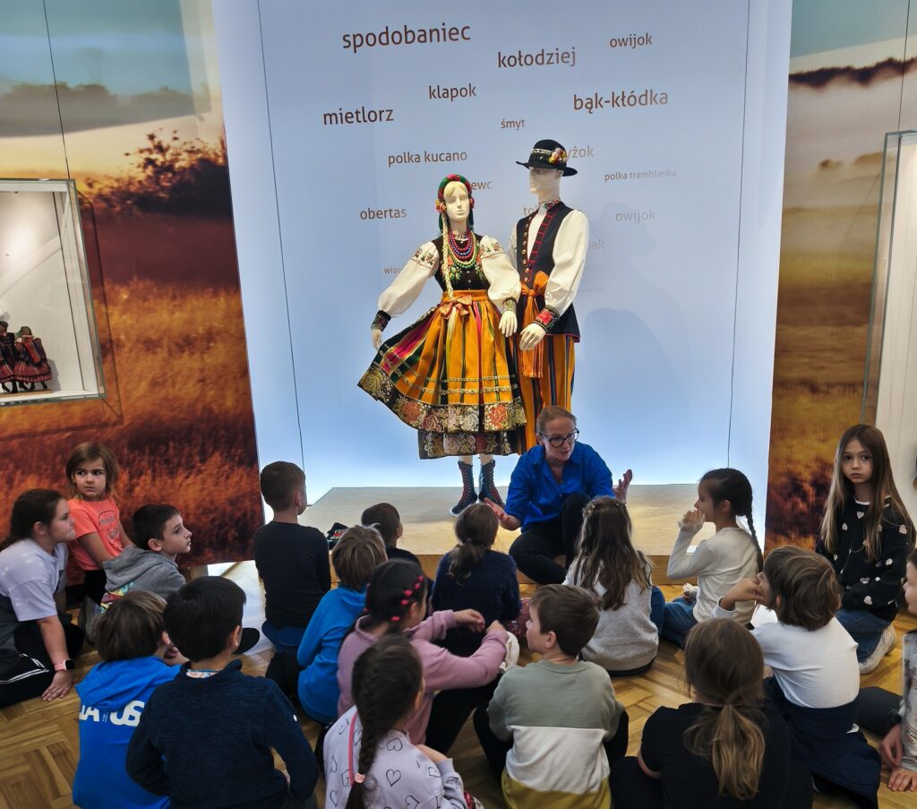 Dzieci miały okazję zobaczyć piękne stroje ludowe z różnych regionów Polski, posłuchać dźwięków tradycyjnych instrumentów i spróbować swoich sił w tańcach ludowych.