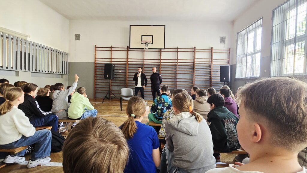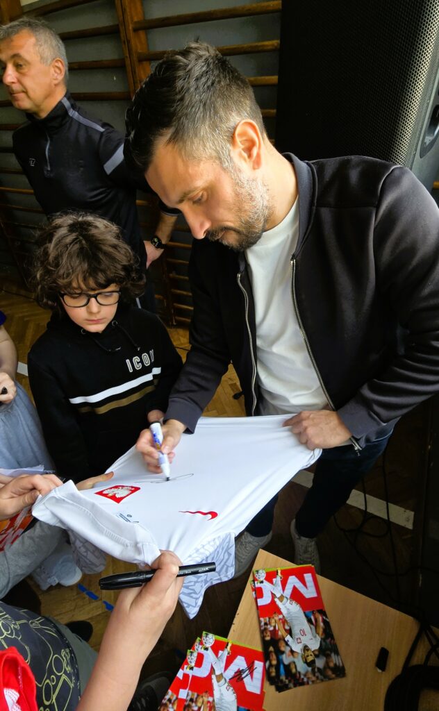 W naszej szkole gościliśmy byłego reprezentanta Polski w piłce nożnej, Pana Macieja Makuszewskiego. Sportowiec opowiedział uczniom o swojej drodze do profesjonalnej kariery – od pierwszych treningów, przez momenty pełne wyzwań, aż po występy w kadrze narodowej. Jego opowieść była pełna pasji, humoru i szczerych refleksji.