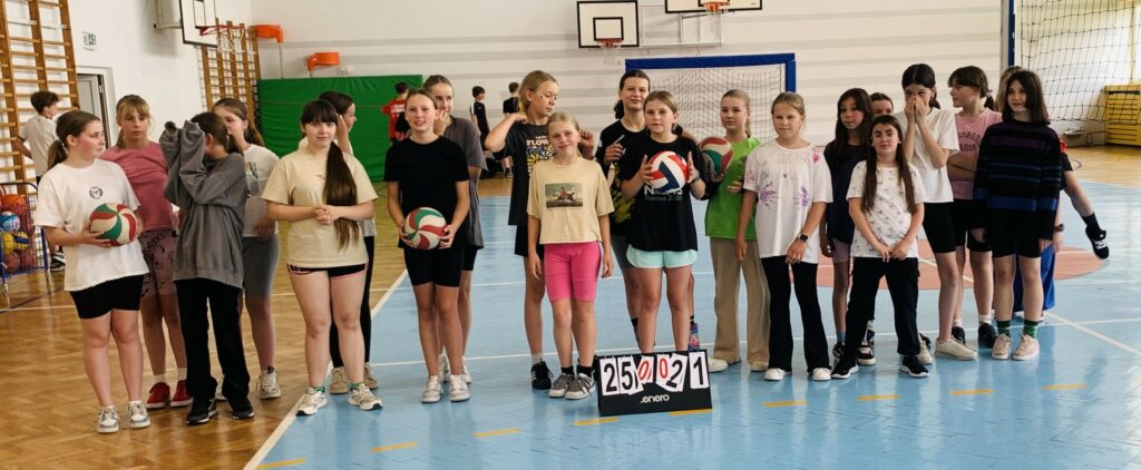 Dnia 29 maja 2025 r. w naszej szkole odbyły się emocjonujące zawody siatkówki dziewcząt z klas piątych. W wydarzeniu wzięły udział drużyny z klas 5a, 5b oraz 5c, które przez ostatnie miesiące przygotowywały się do rywalizacji pod okiem nauczycieli wychowania fizycznego.