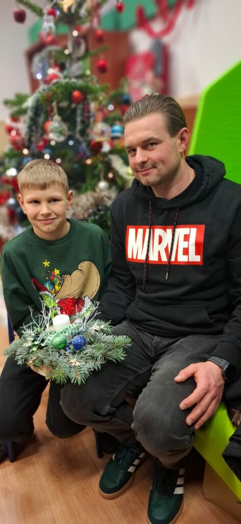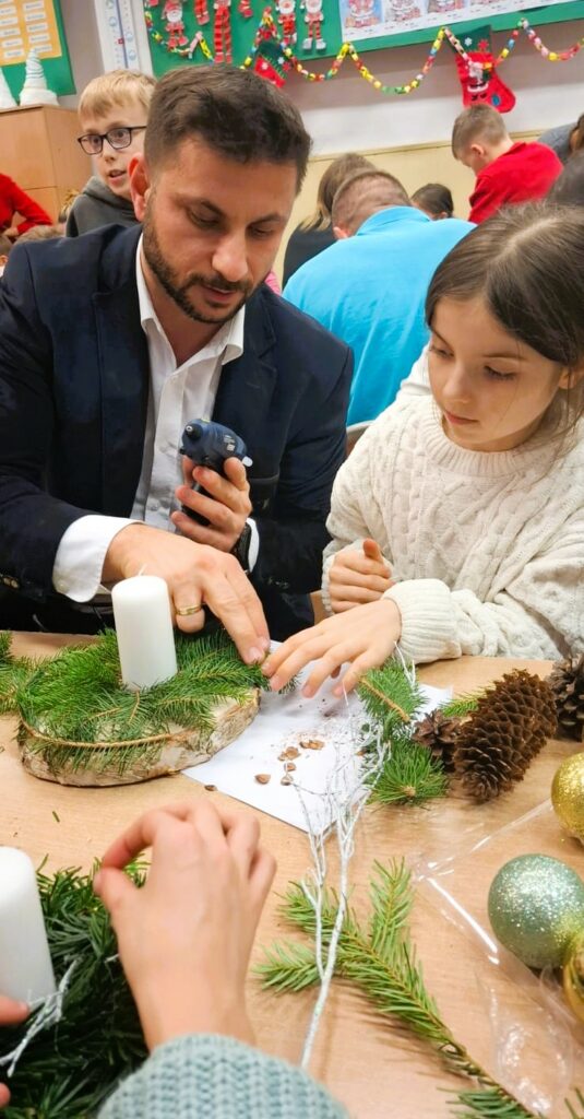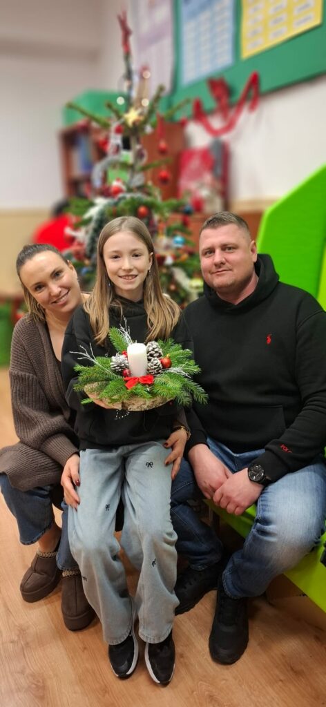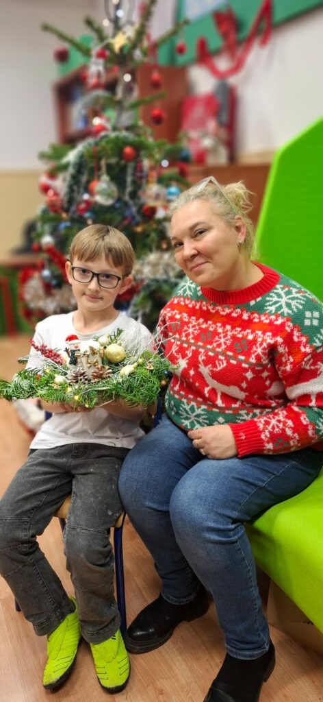 Podczas świątecznego spotkania uczniów klas 3 z rodzicami panowała radosna i ciepła atmosfera. Razem wykonywaliśmy piękne stroiki świąteczne, wykorzystując różnorodne materiały i ozdoby. Dzieci z dużym zaangażowaniem pracowały wspólnie z rodzicami, rozwijając swoją kreatywność. Spotkanie było okazją do rozmów, śmiechu i wzajemnej integracji. Wykonane stroiki stały się wspaniałą pamiątką tego przedświątecznego czasu.