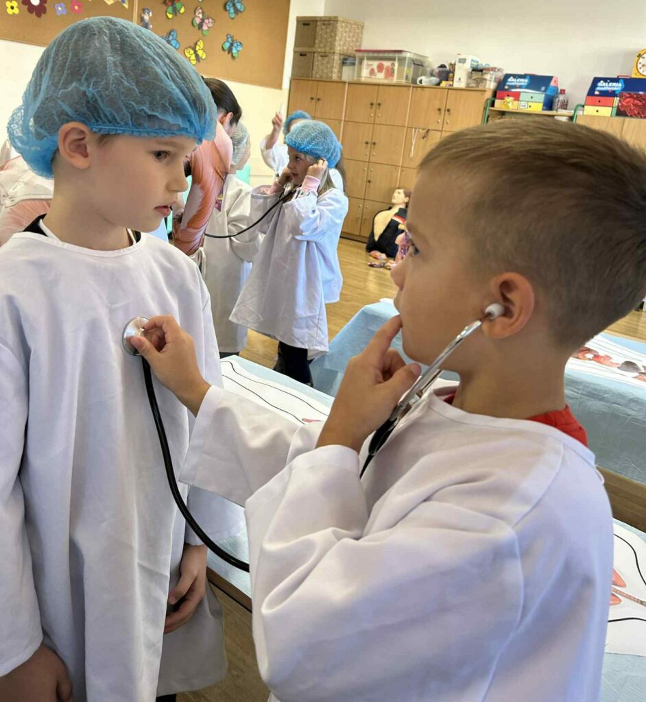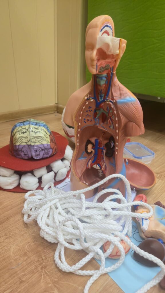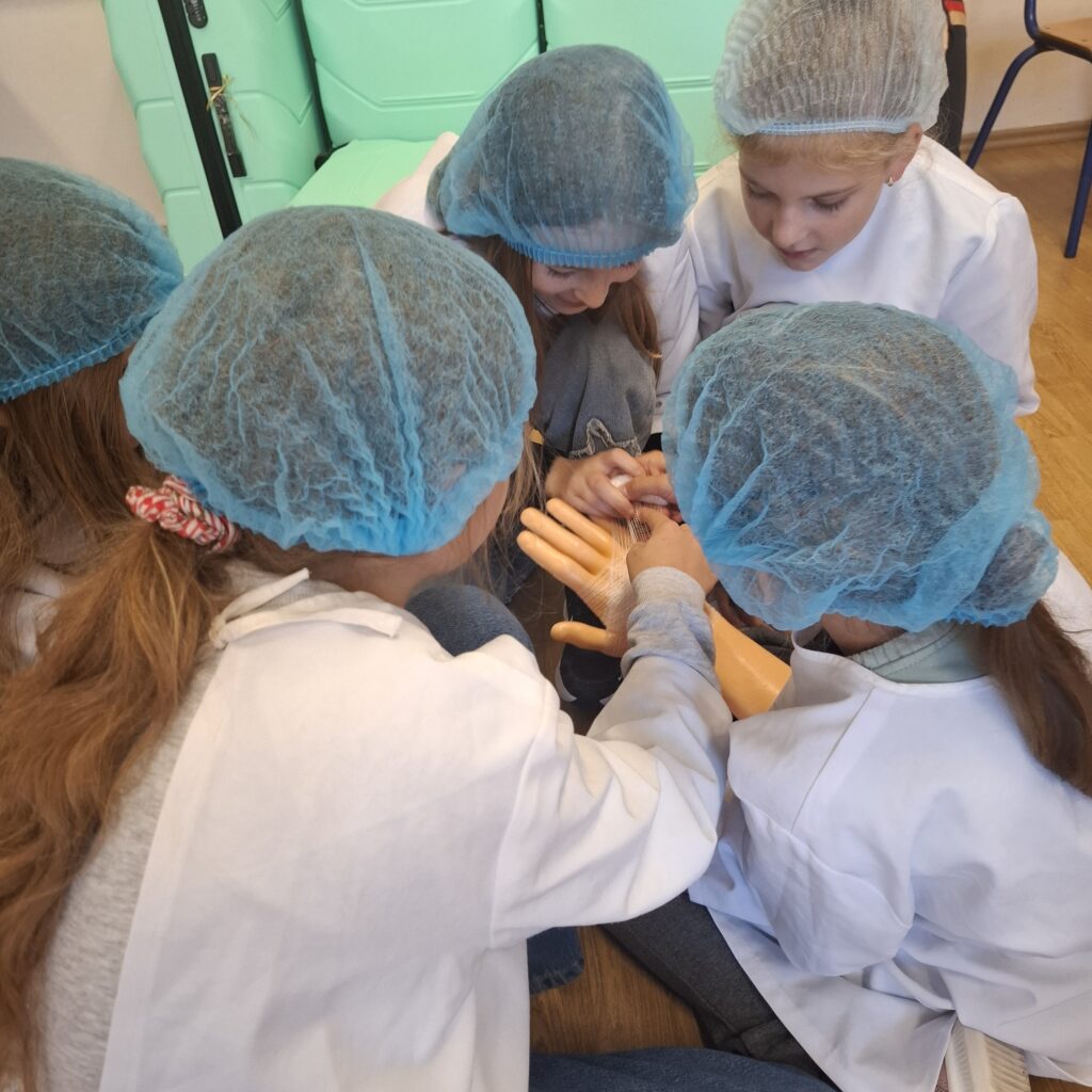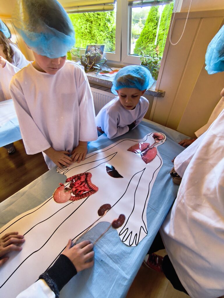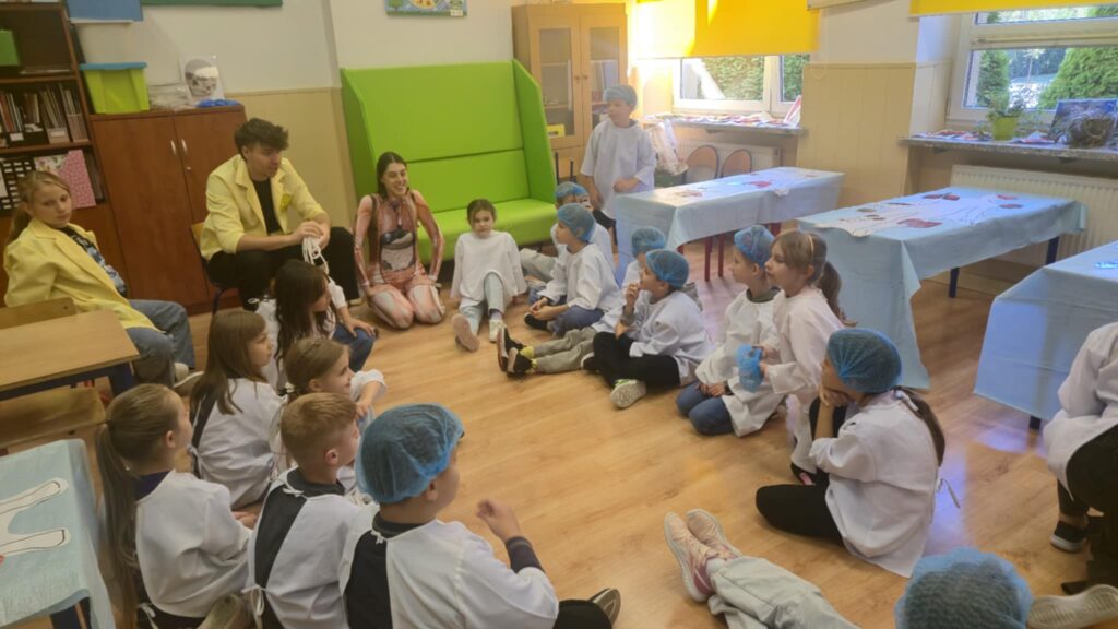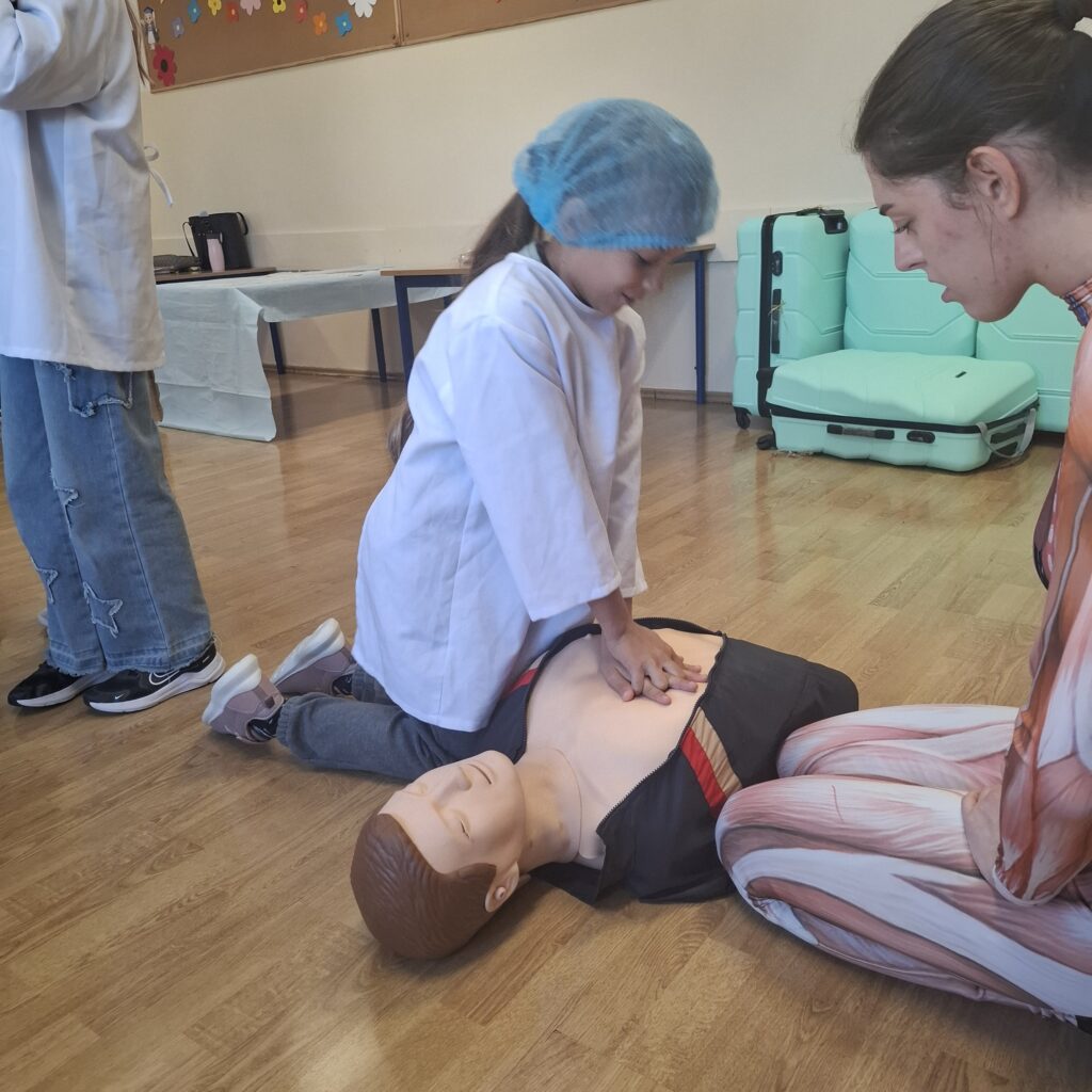W dniach 25-26 września 2025r. w klasach I-III  odbyły się warsztaty  medyczne . Dzieci poznały na modelach jak zbudowany jest człowiek, jego komórki, mózg, język, oczy, serce.  Uczyły  się opatrywać rany, zakładać gips na palec, reagować w sytuacji zagrożenia życia i zdrowia oraz poprawnej komunikacji i wzywania pomocy. Każde dziecko  miało możliwość samodzielnie wykonać RKO na manekinie. Umiejętność udzielania pierwszej pomocy to jedna z najważniejszych kompetencji życiowych . W sytuacjach kryzysowych liczy się szybka reakcja, dlatego tak ważne jest, aby dzieci już od najmłodszych lat uczyły się podstaw ratowania życia.