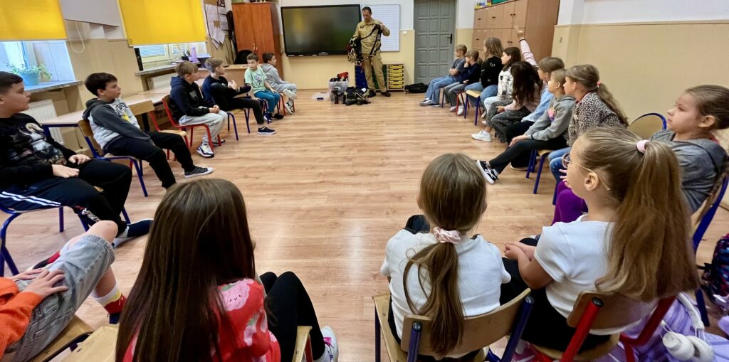 W naszej szkole odbyły się wyjątkowe warsztaty, które poprowadził pan Adam – strażak z Państwowej Straży Pożarnej. Uczniowie mieli okazję poznać specyfikę pracy strażaka, dowiedzieć się, jak wygląda codzienna służba oraz jakie umiejętności i odwaga są potrzebne w tym zawodzie.