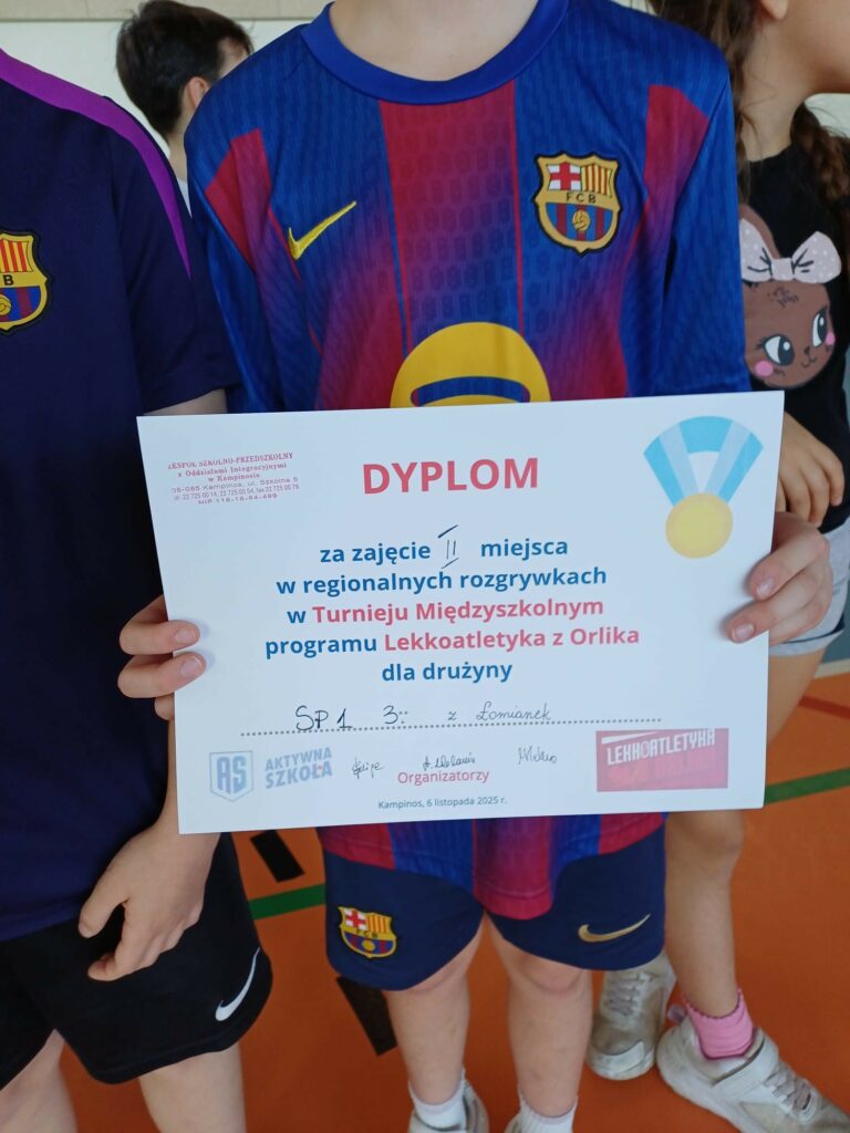 Dnia 6 listopada 2025 roku w Kampinosie odbyły się regionalne zawody lekkoatletyczne w ramach ogólnopolskiego programu „Lekkoatletyka z Orlika”. Naszą szkołę reprezentowały dwie klasy – 4 oraz 3, które we wcześniejszym etapie szkolnym zajęły pierwsze miejsce, dzięki czemu uzyskały awans do etapu regionalnego. Podczas zawodów uczestnicy rywalizowali w różnych konkurencjach lekkoatletycznych, takich jak biegi na krótkich i średnich dystansach, skoki w dal oraz rzuty. Wydarzenie zgromadziło liczne drużyny z okolicznych miejscowości, a sportowa atmosfera i duch rywalizacji towarzyszyły zawodnikom przez cały dzień.
